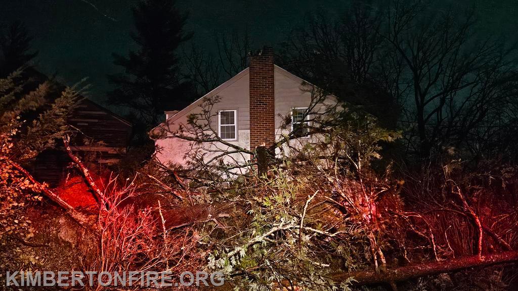 Monday & Tuesday March 16th and 17th. Kimberton firefighters answered well over a dozen calls for service during the heavy thunderstorm during the late evening hours and night. Pictured is a home where several trees came down on it, causing damage to the home in the 1800 block of Kimberton Road in West Vincent Twp.